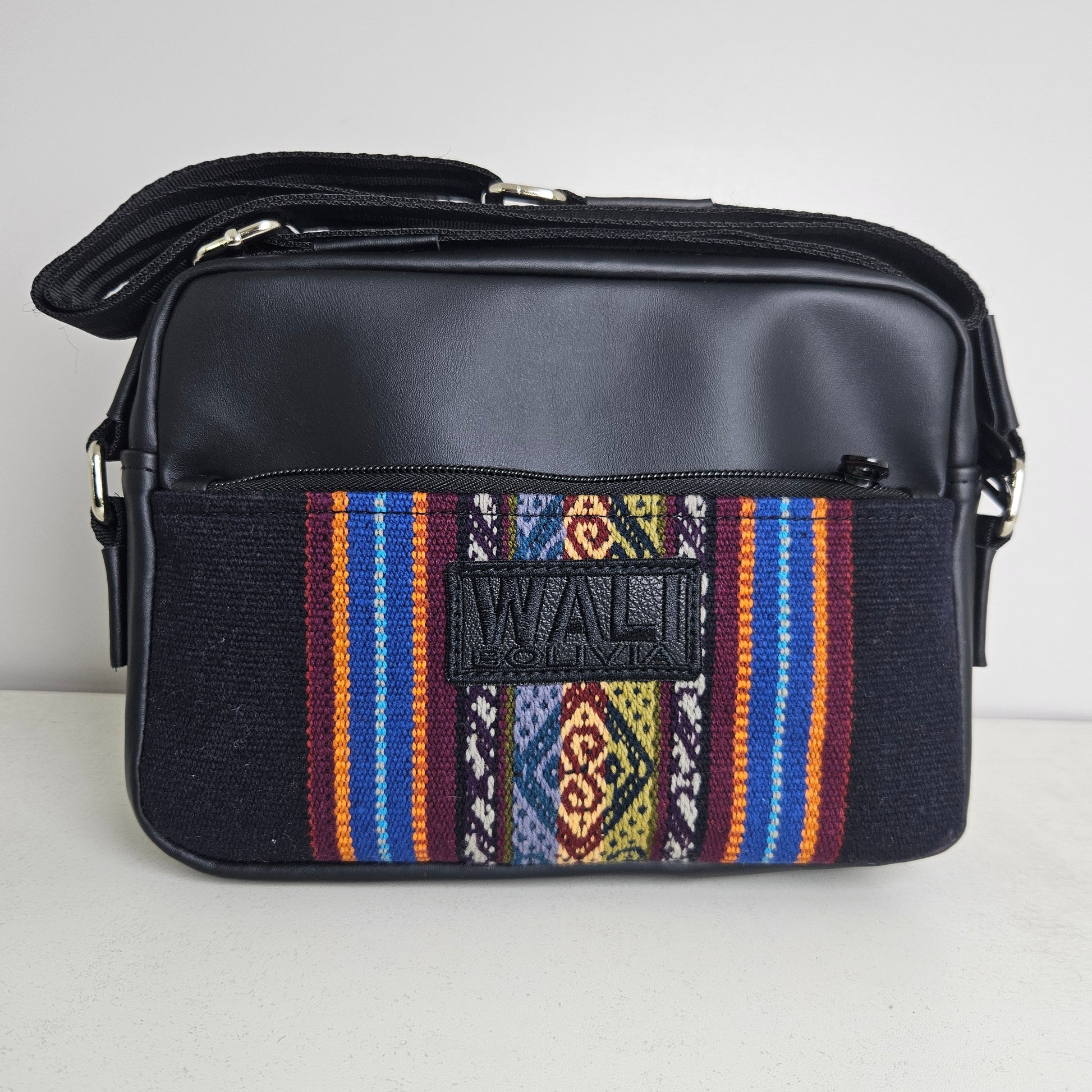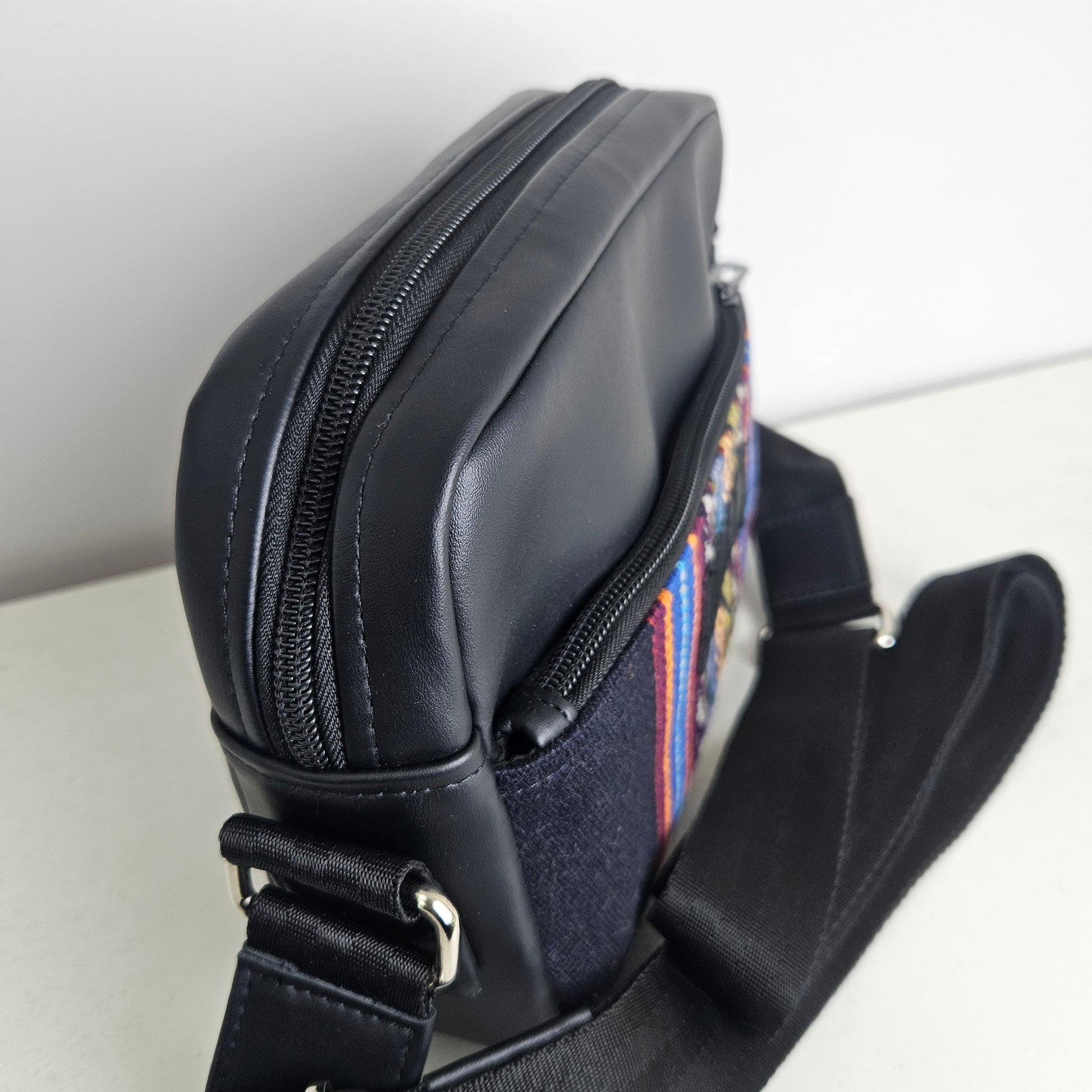 La bandolera de cuero en azul marino, elaborada con cuero y aguayo natural, combina durabilidad y estética. Su diseño permite un uso práctico en diversas ocasiones, mientras que los materiales de alta calidad garantizan resistencia y confort. Ideal para quienes buscan un accesorio funcional y elegante.
