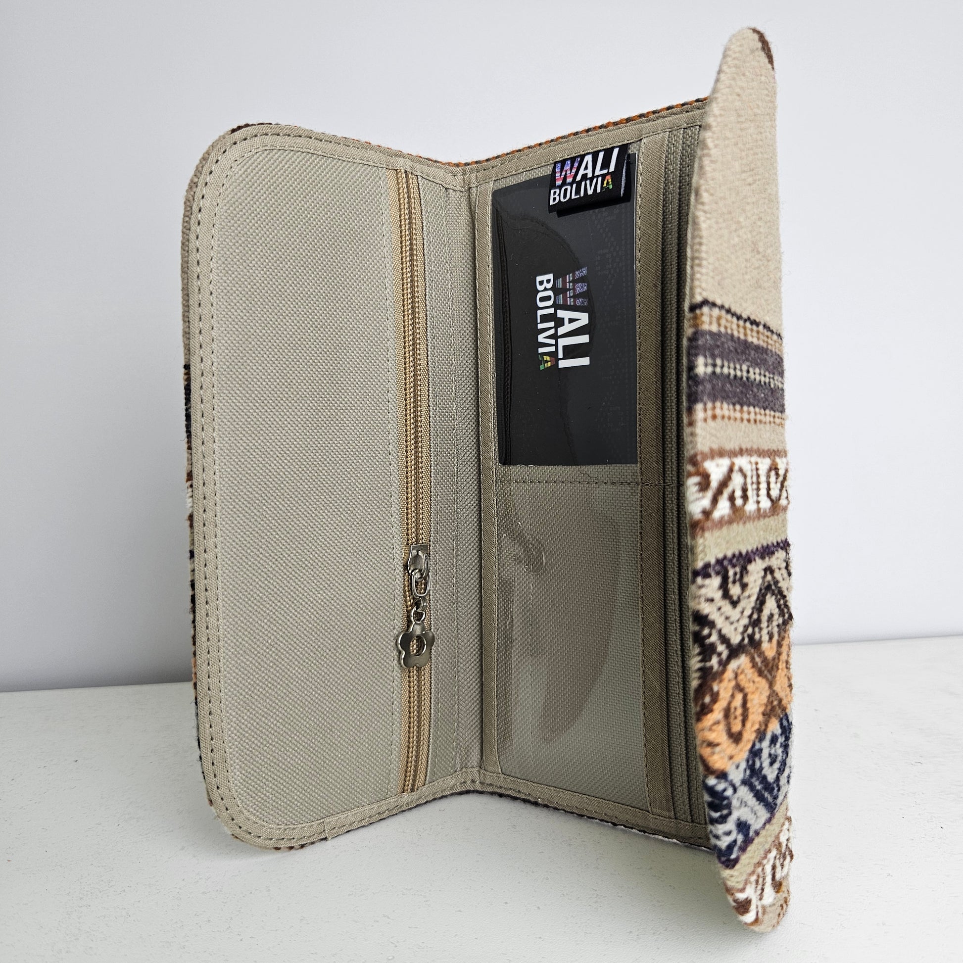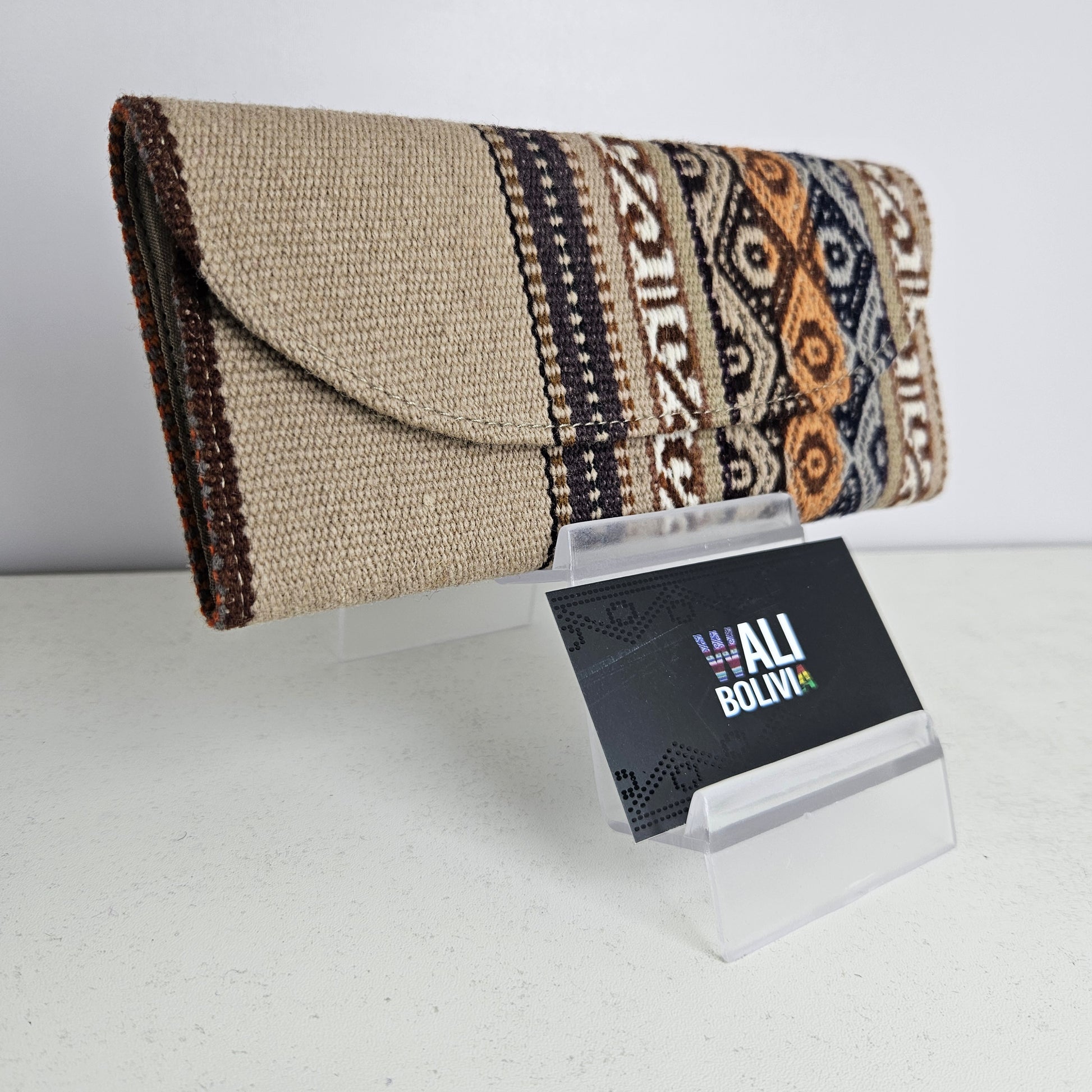 La billetera chequera de aguayo natural y engomada es la opción perfecta para llevar tus tarjetas y dinero de forma ordenada y segura. Su diseño bajo en beige le da un toque elegante y versátil a tu estilo. Hecha con materiales de alta calidad, esta billetera te garantiza durabilidad y resistencia.