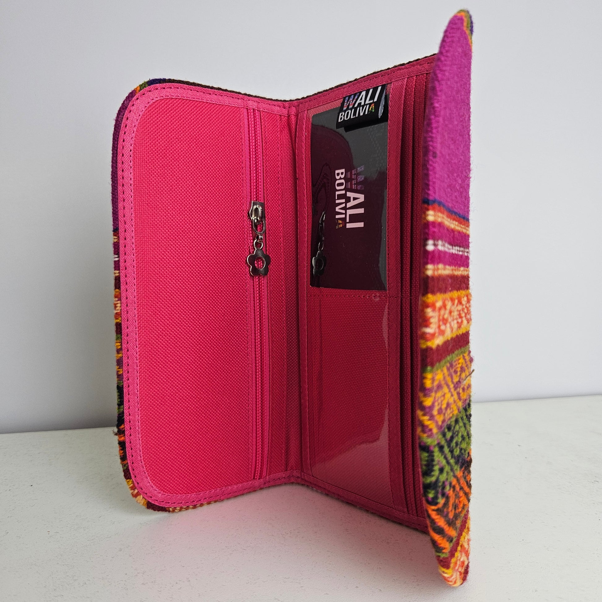 La Billetera Chequera (rouse 2) está hecha con aguayo natural y engomada, lo que la hace resistente y duradera. Además, su diseño tradicional añade un toque de estilo a su funcionalidad. Ideal para llevar tus cheques y tarjetas de manera segura y cómoda.