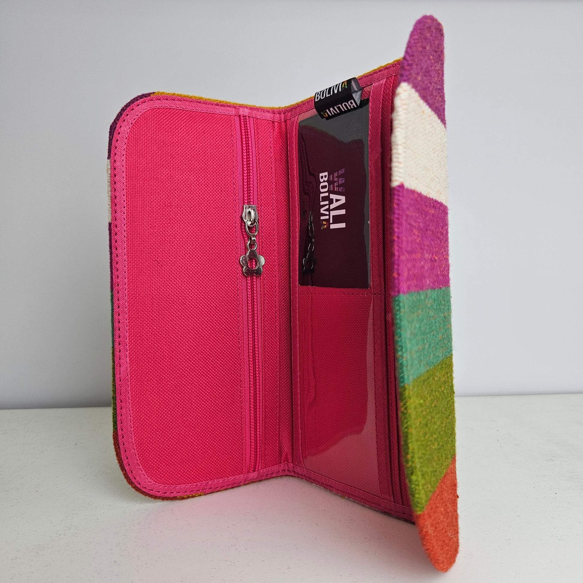 "La billetera chequera troplical está hecha de aguayo natural y cuenta con un diseño engomado para mayor resistencia. Disfruta de un estilo único y sostenible con esta billetera, perfecta para llevar tus chequeras y tarjetas."