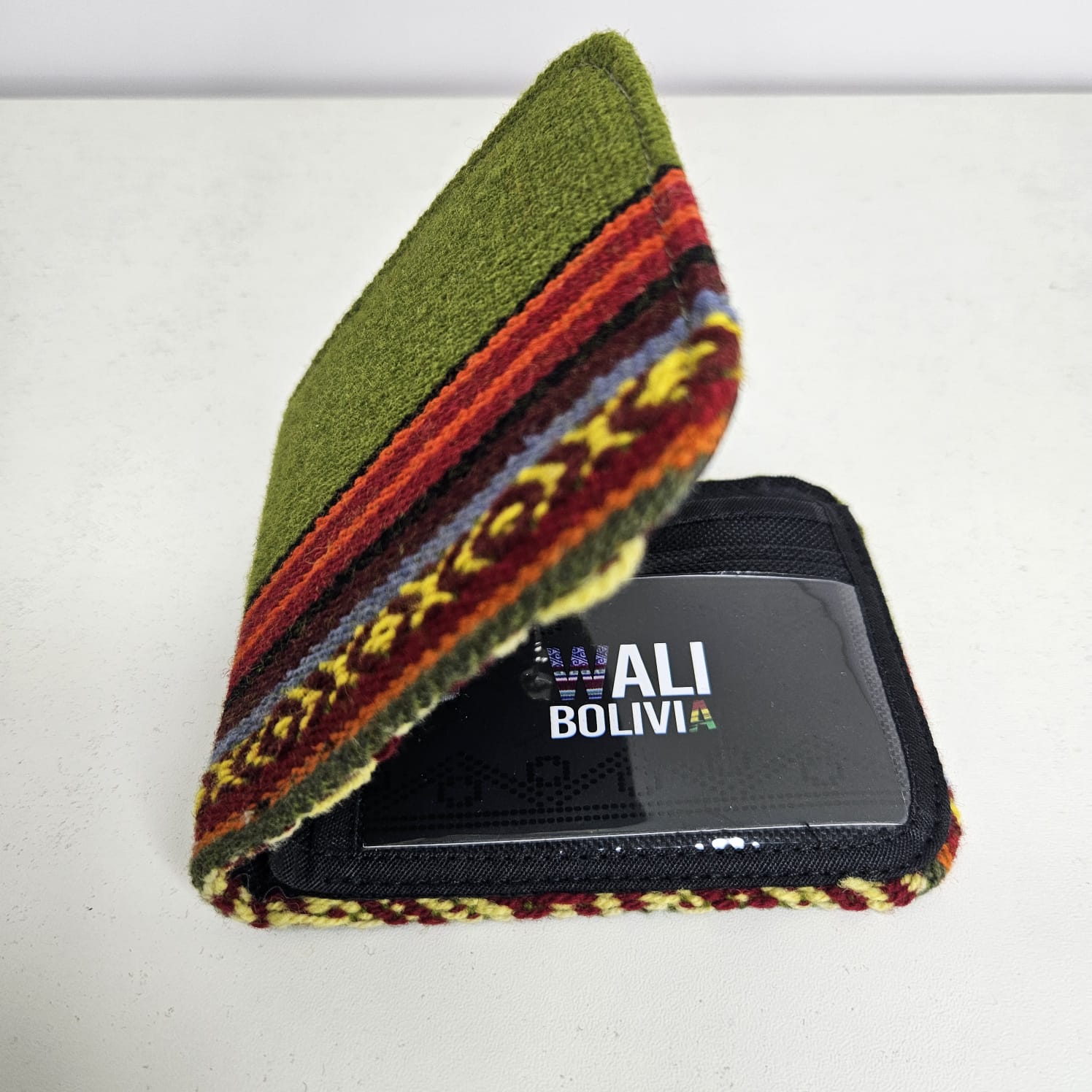 Esta billetera doble (verde pacai) está hecha de aguayo natural y con engomada, lo que la hace resistente y duradera. Con su tamaño compacto, podrás llevar todas tus tarjetas y dinero de forma organizada y segura. ¡Una opción sostenible y práctica para tu día a día!