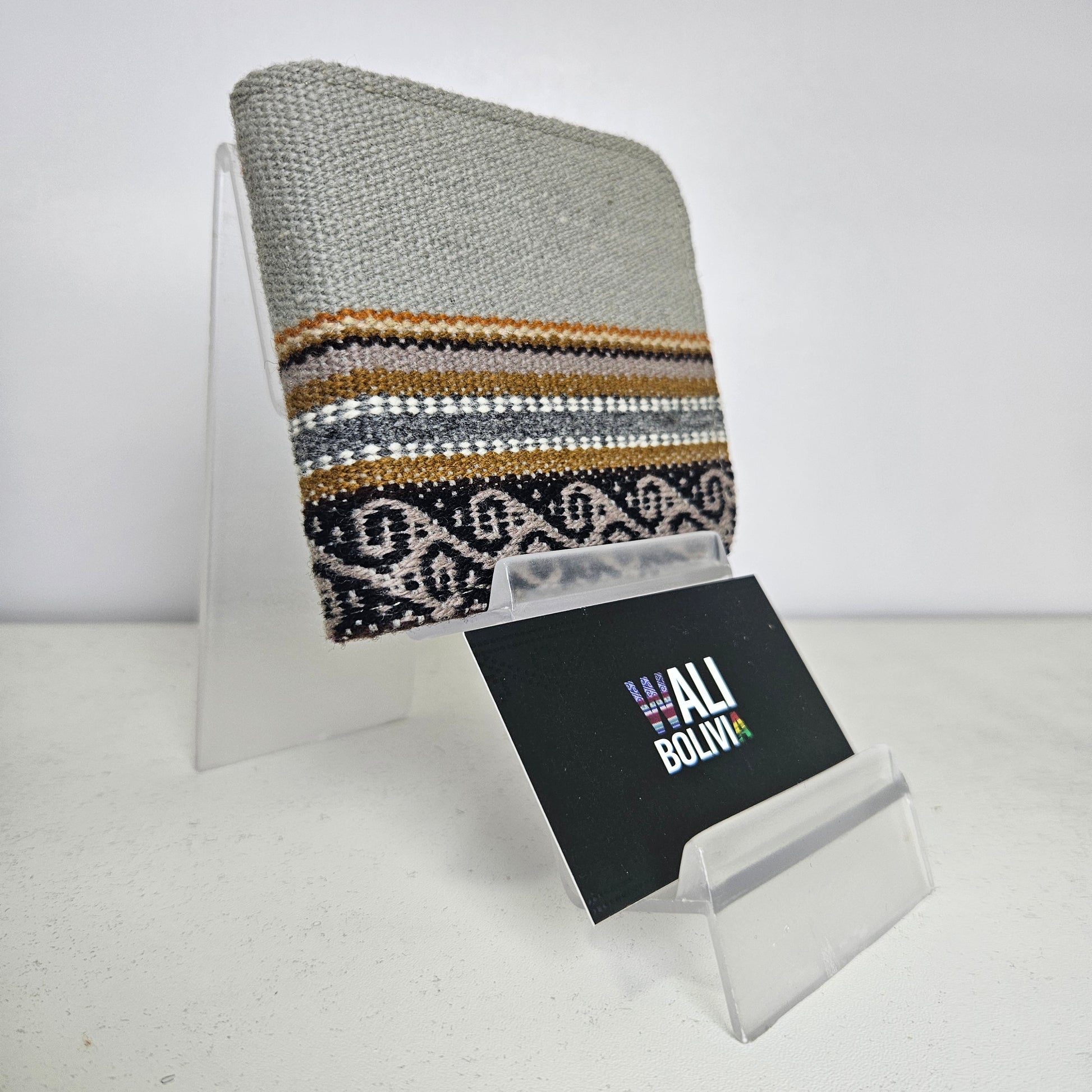 Disfruta de una billetera con mucha capacidad, diseñada con una tela de aguayo natural lavable y con varias divisiones para organizar mejor tu dinero y tarjetas. Esta billetera doble es práctica, resistente y duradera.