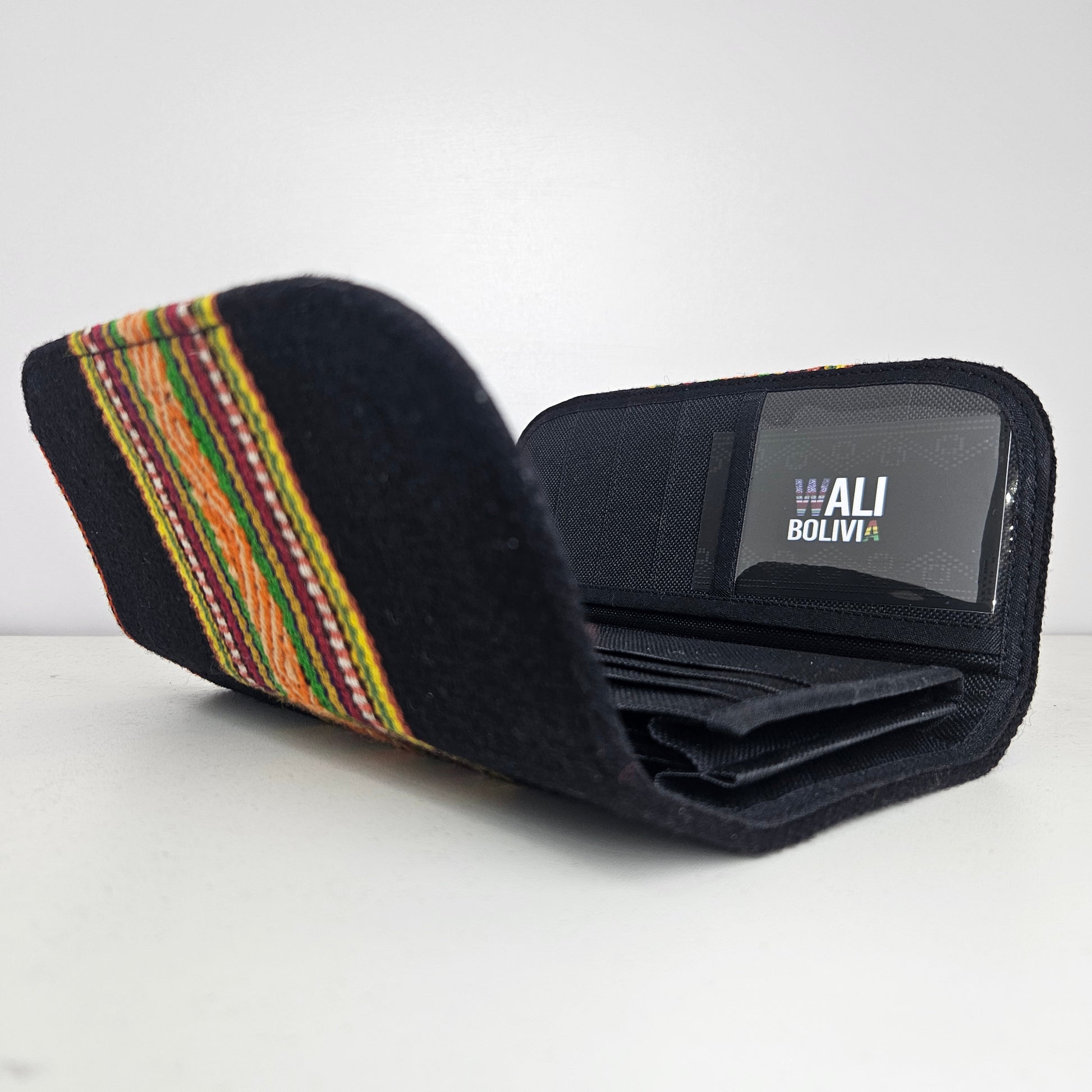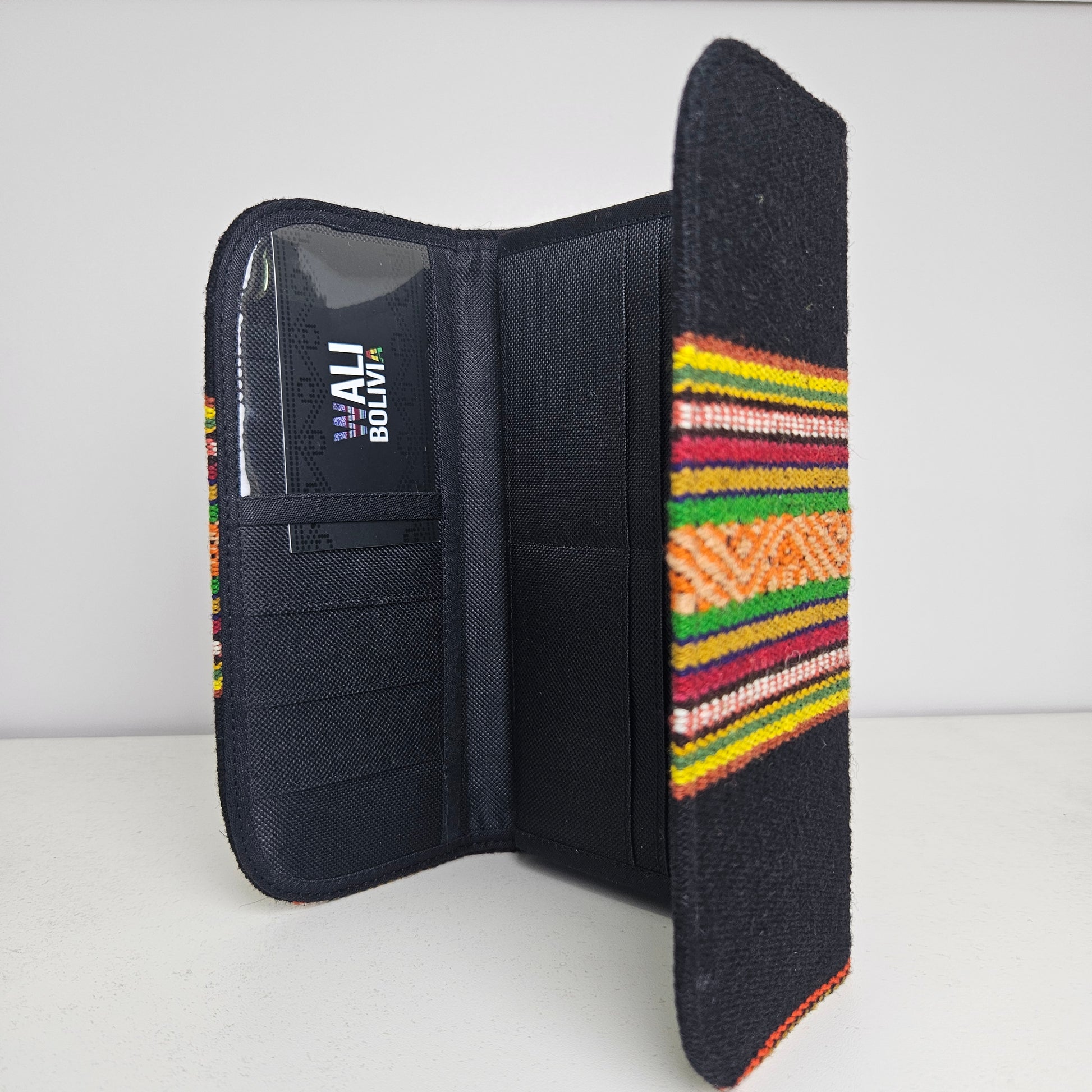 Esta billetera portacelular está hecha con aguayo natural y tiene un diseño medio de ensueño. Con una capa engomada para mayor protección, es perfecta para llevar tus tarjetas y tu celular en un solo lugar. Mantén tus pertenencias seguras y con estilo con este práctico accesorio.