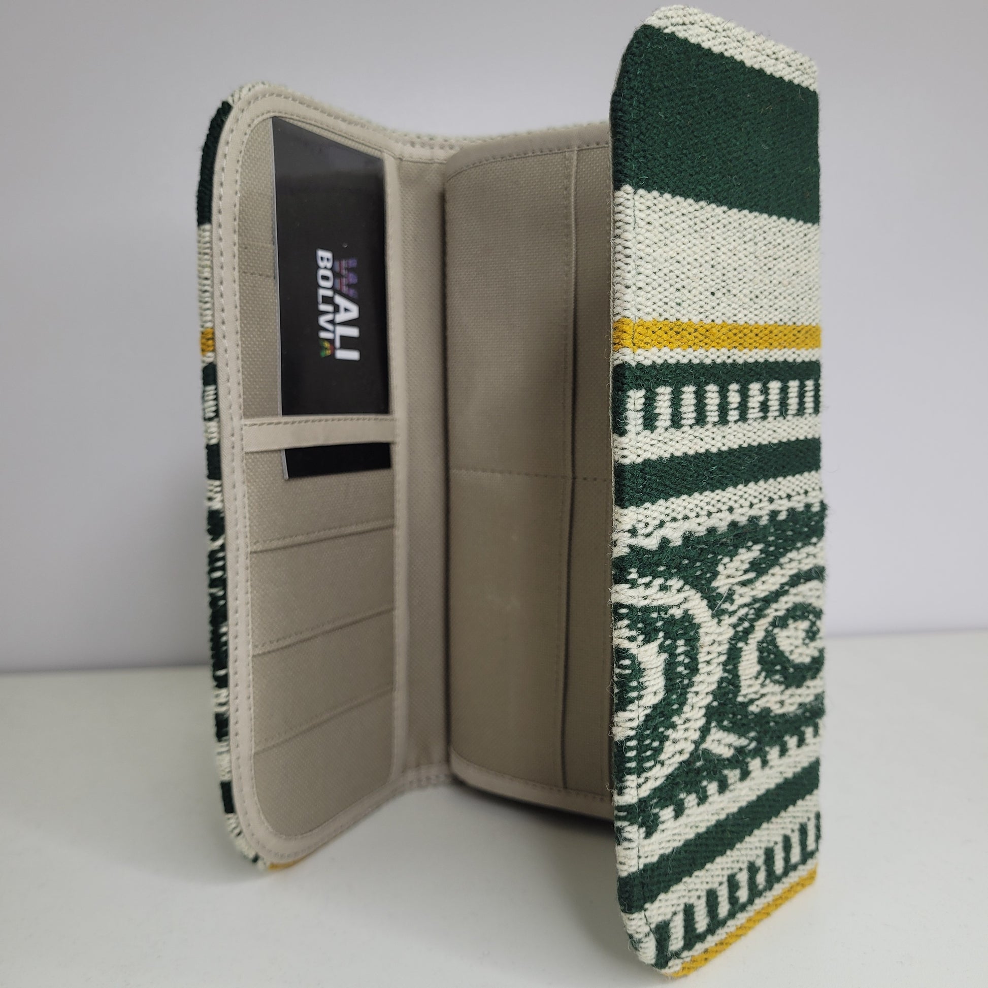 Esta billetera portacelular en color verde presenta un diseño único que te permitirá llevar tu celular y otros objetos de manera segura y organizada. Con su nuevo color y diseño, tendrás un accesorio moderno y funcional para complementar tu estilo. ¡No esperes más para tenerla!