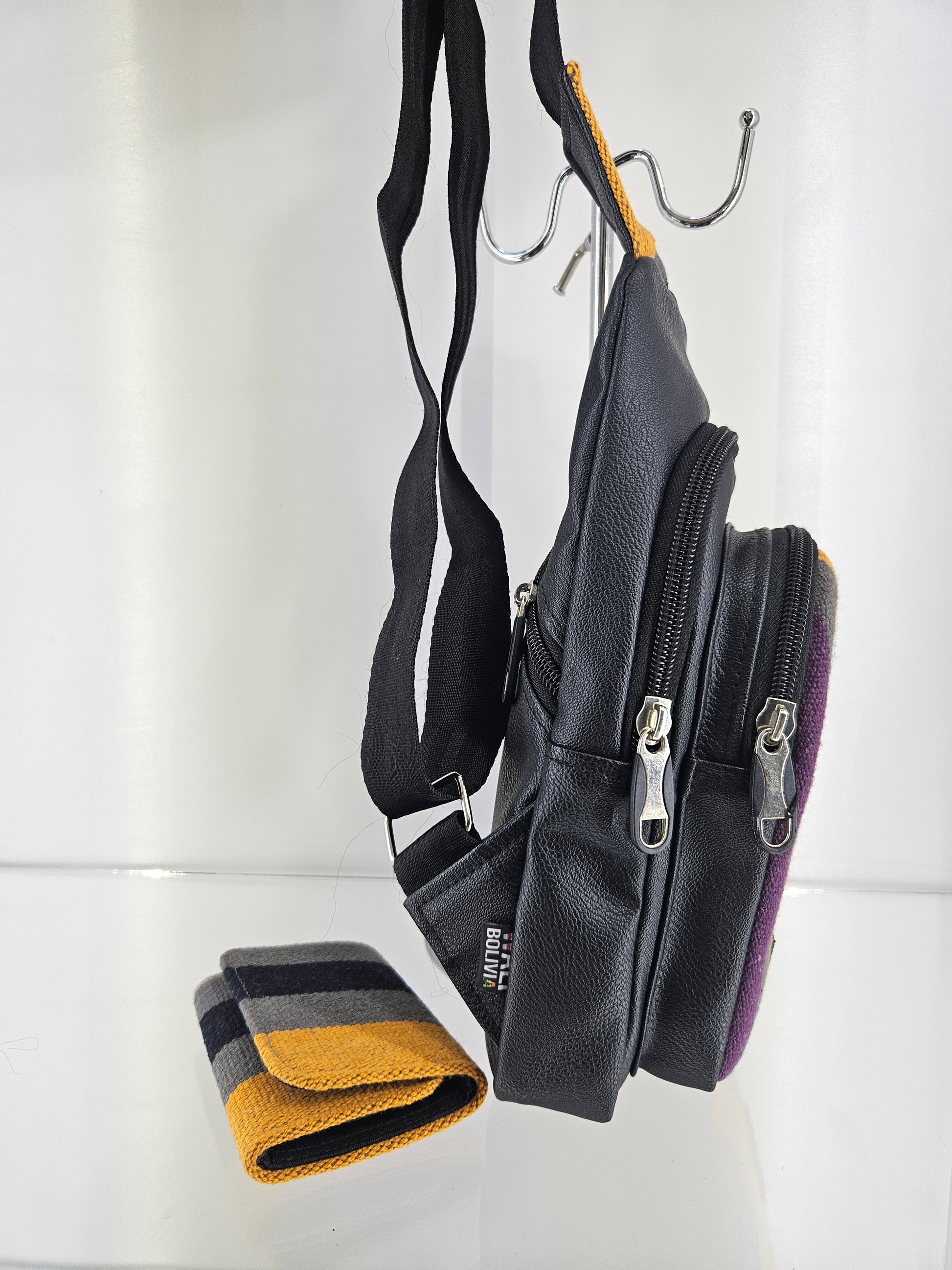 La pechera unisex Color Api, confeccionada en ecocuero y Aguayo Natural, ofrece un diseño clásico que combina elegancia y funcionalidad. Acompañada de una billetera triple, este conjunto artesano garantiza durabilidad y un estilo auténtico, ideal para quienes valoran la calidad en sus accesorios.