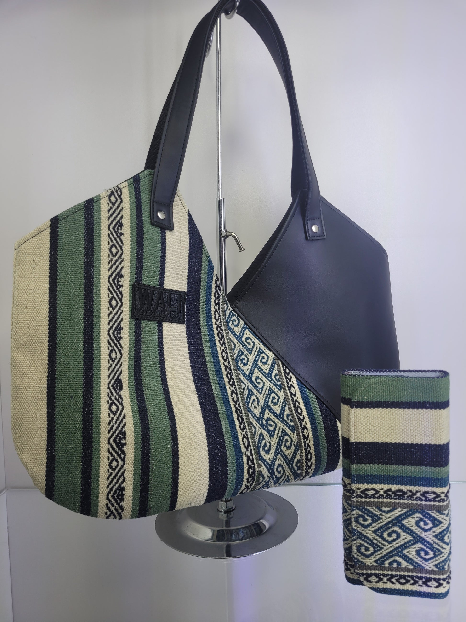 El Dúo para dama en color jade es la elección perfecta para mujeres con estilo. Incluye una cartera en forma de V y una elegante billetera hechas de cuero y aguayo natural, lo que garantiza calidad y durabilidad. ¡No esperes más para ser una mujer feliz y con un toque único con este conjunto!