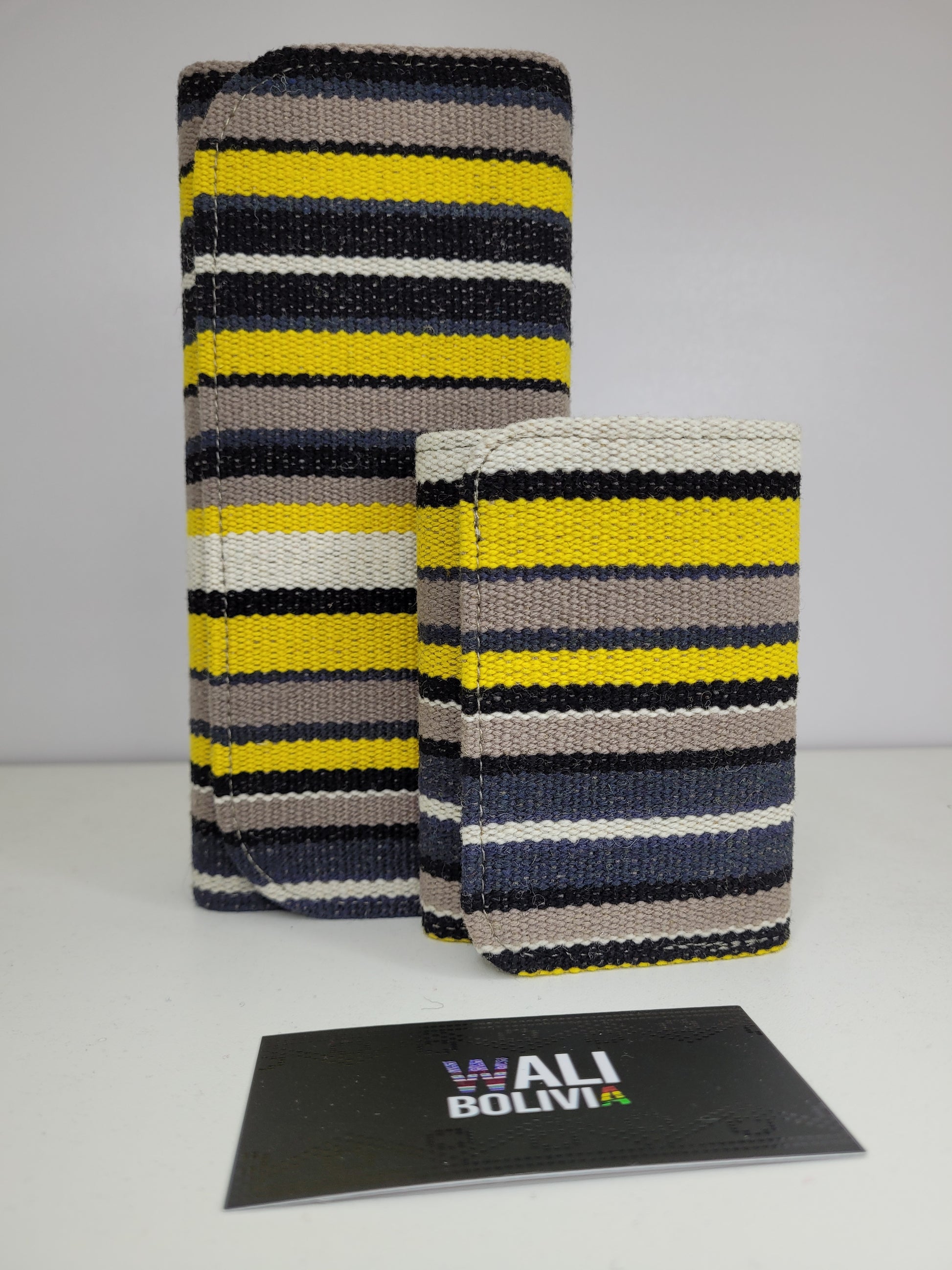 Dúo Pareja (color tigre) es una combinación perfecta para parejas que buscan accesorios hechos de aguayo natural y engomadas. Incluye una billetera triple para él y una billetera portacelular para ella, todo en un conjunto. ¡Mantengan sus pertenencias organizadas y protegidas juntas, con estilo!
