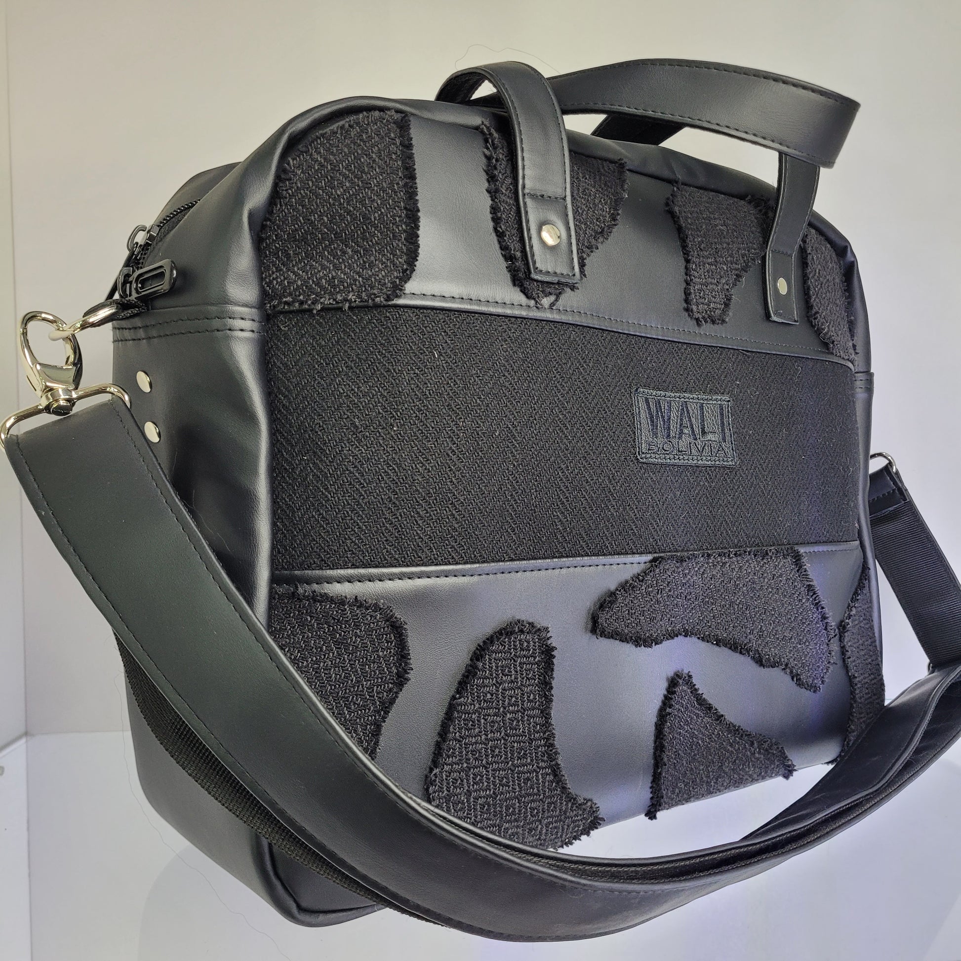 El Maletín de oficina grande (Perdiz negro) está confeccionado en cuero y aguayo natural, proporcionando una combinación de durabilidad y estilo. Con divisiones específicas para tu laptop, lapiceros y otros accesorios, mantendrás tus objetos organizados y a salvo mientras viajas. Ideal para profesionales exigentes.