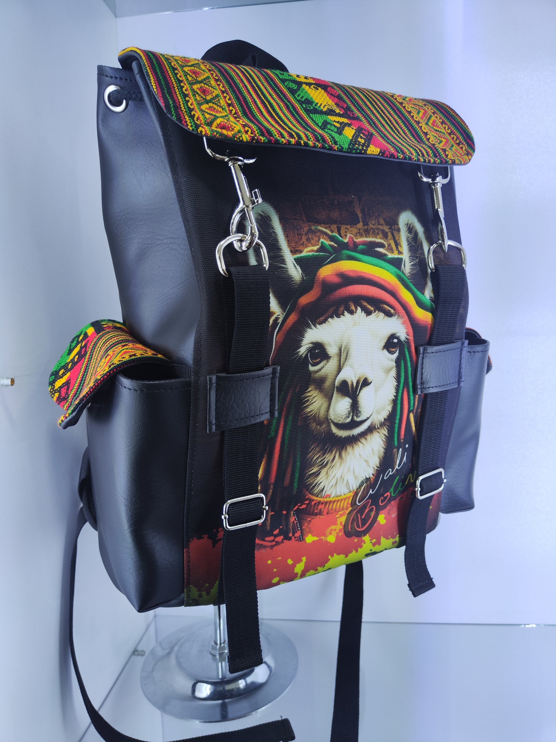¡Lleva contigo la cultura boliviana con la mochila urbana rastas! Su diseño de regué y detalles de Aguayo la hacen resistente y auténtica. Ideal para llevar tus pertenencias con estilo y apoyar la cultura.