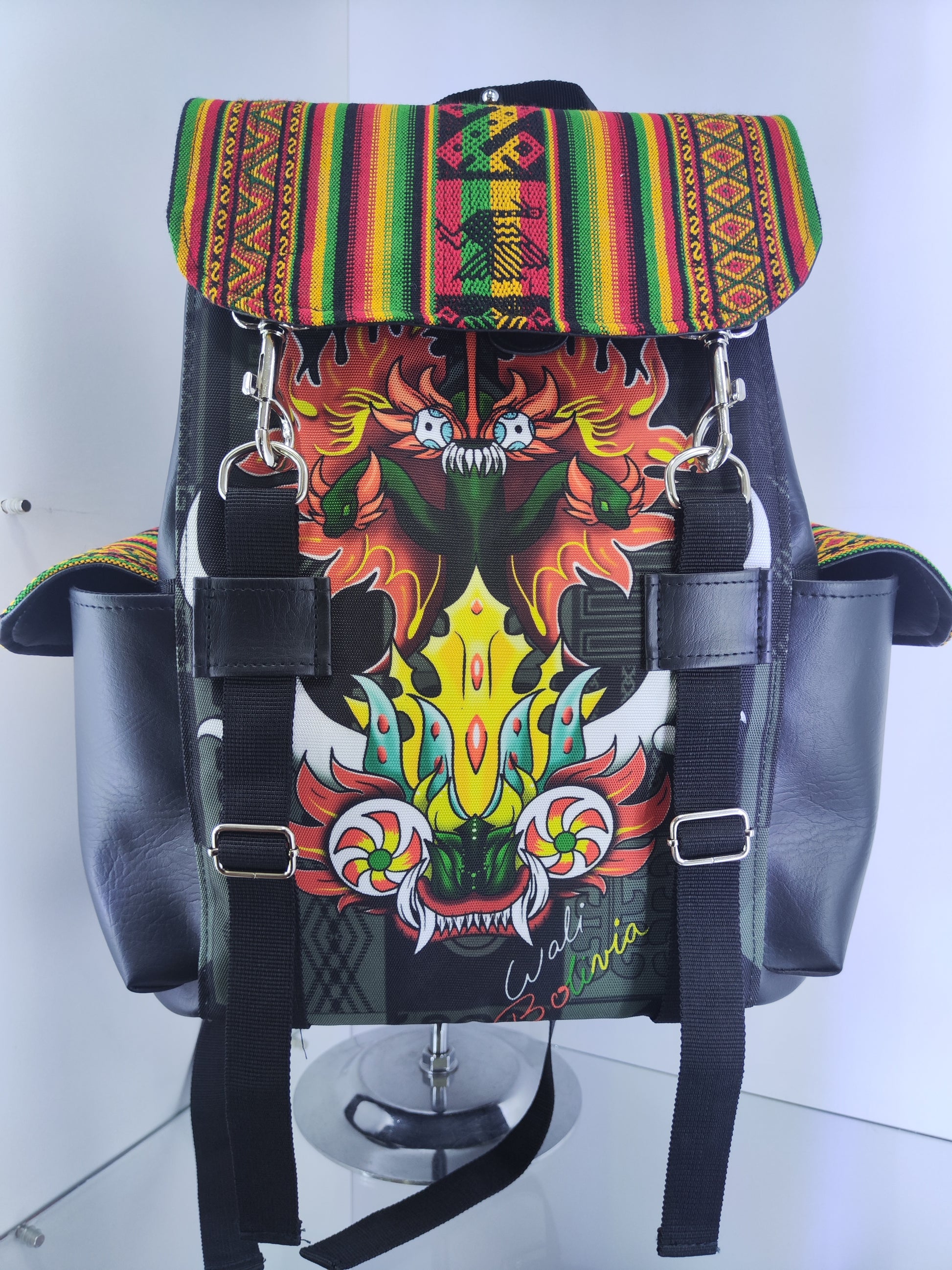 "¡Celebra la cultura boliviana con nuestra mochila urbana DIABLADA! Diseñada en Bolivia con detalles de Aguayo, esta mochila de alta resistencia es perfecta para llevar tus pertenencias con estilo. ¡No pierdas la oportunidad de tener un pedazo de Bolivia contigo!"