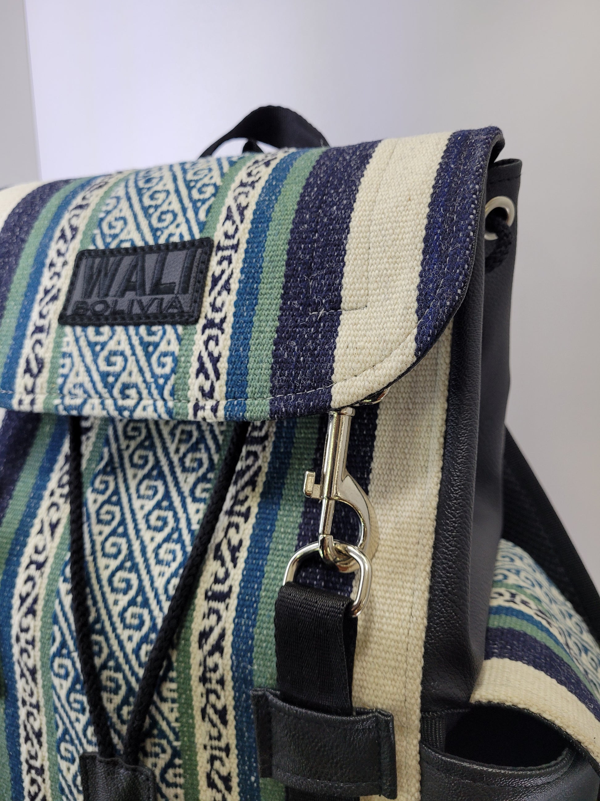 Esta mochila estilo urbano presenta detalles de Aguayo y está reforzada para mayor resistencia y durabilidad. Además, cuenta con accesorios metálicos ajustables para un ajuste personalizado. Ideal para aquellos que buscan un look moderno y duradero en su mochila.