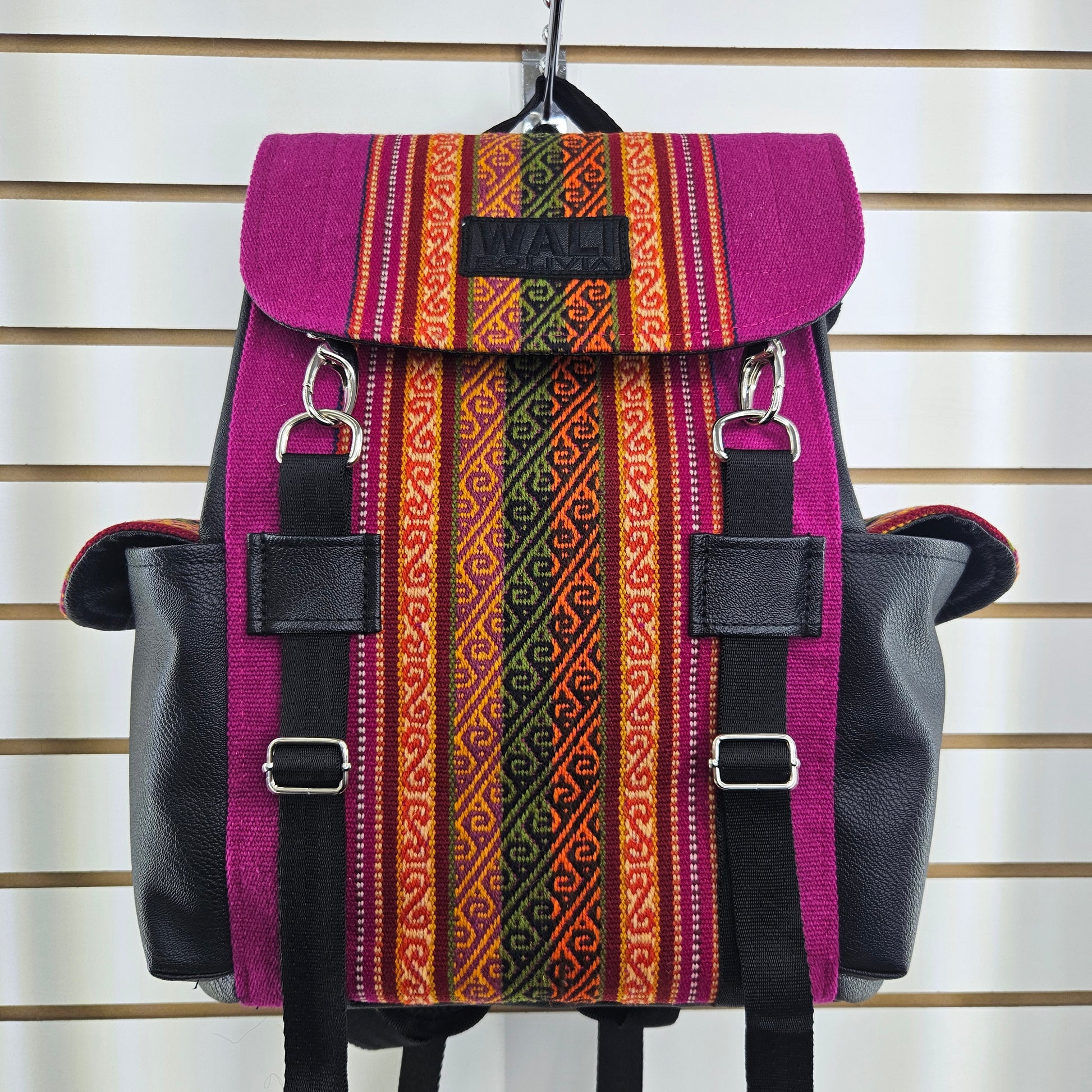 Esta mochila Wali ofrece un diseño único y funcional, confeccionada en aguayo natural y ecocuero. Su tamaño de oficio y su protección en los hombros la hacen perfecta para llevar tus pertenencias de manera cómoda y segura. ¡Ideal para el día a día y para un estilo de vida sostenible!