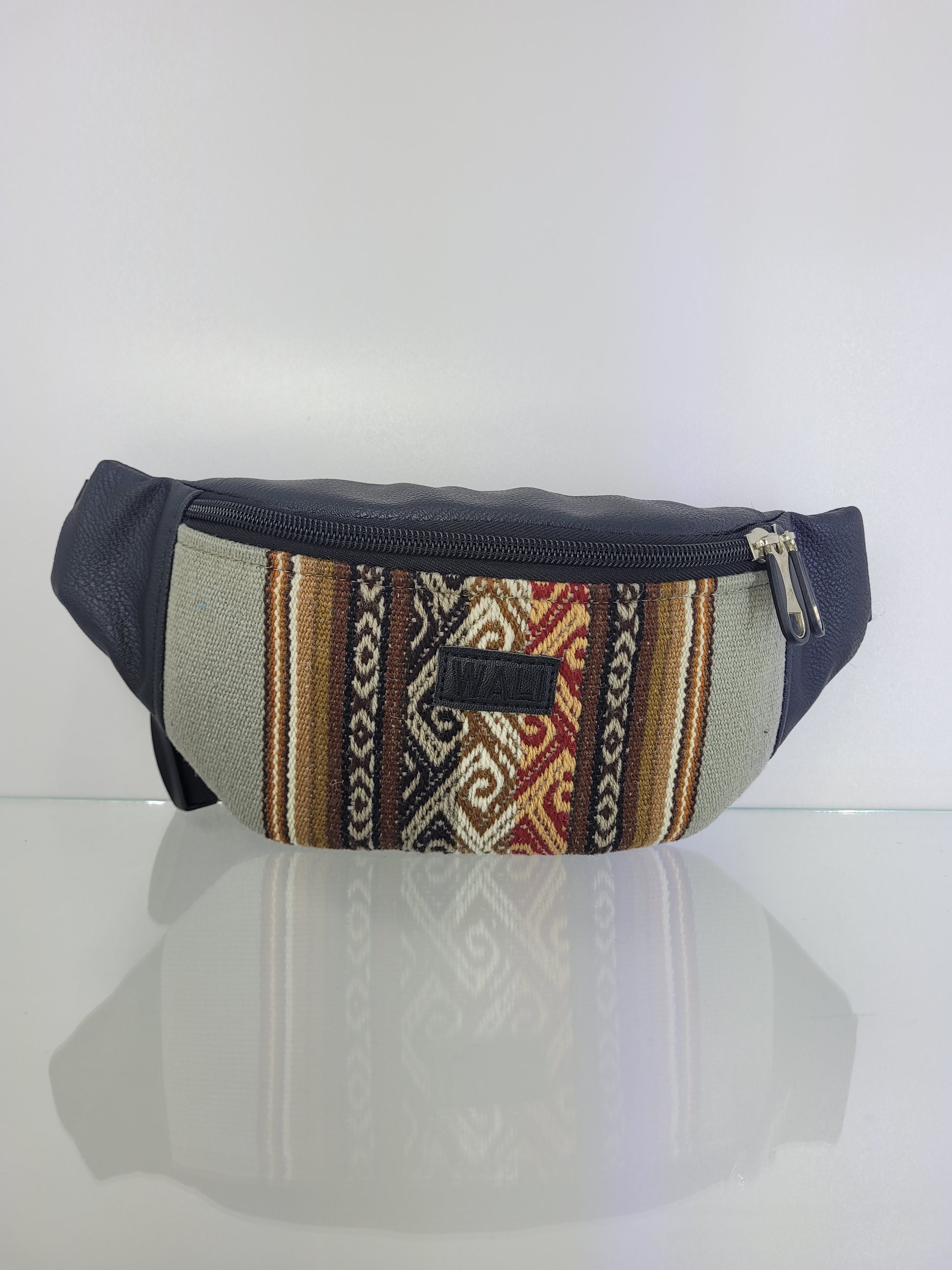 ¡La riñonera perfecta para complementar tu estilo urbano! Diseñada con un detalle de aguayo y tres bolsillos con cierre de alta duración, ideal para llevar tus objetos valiosos. ¡La comodidad y elegancia de los Andes en un solo producto!