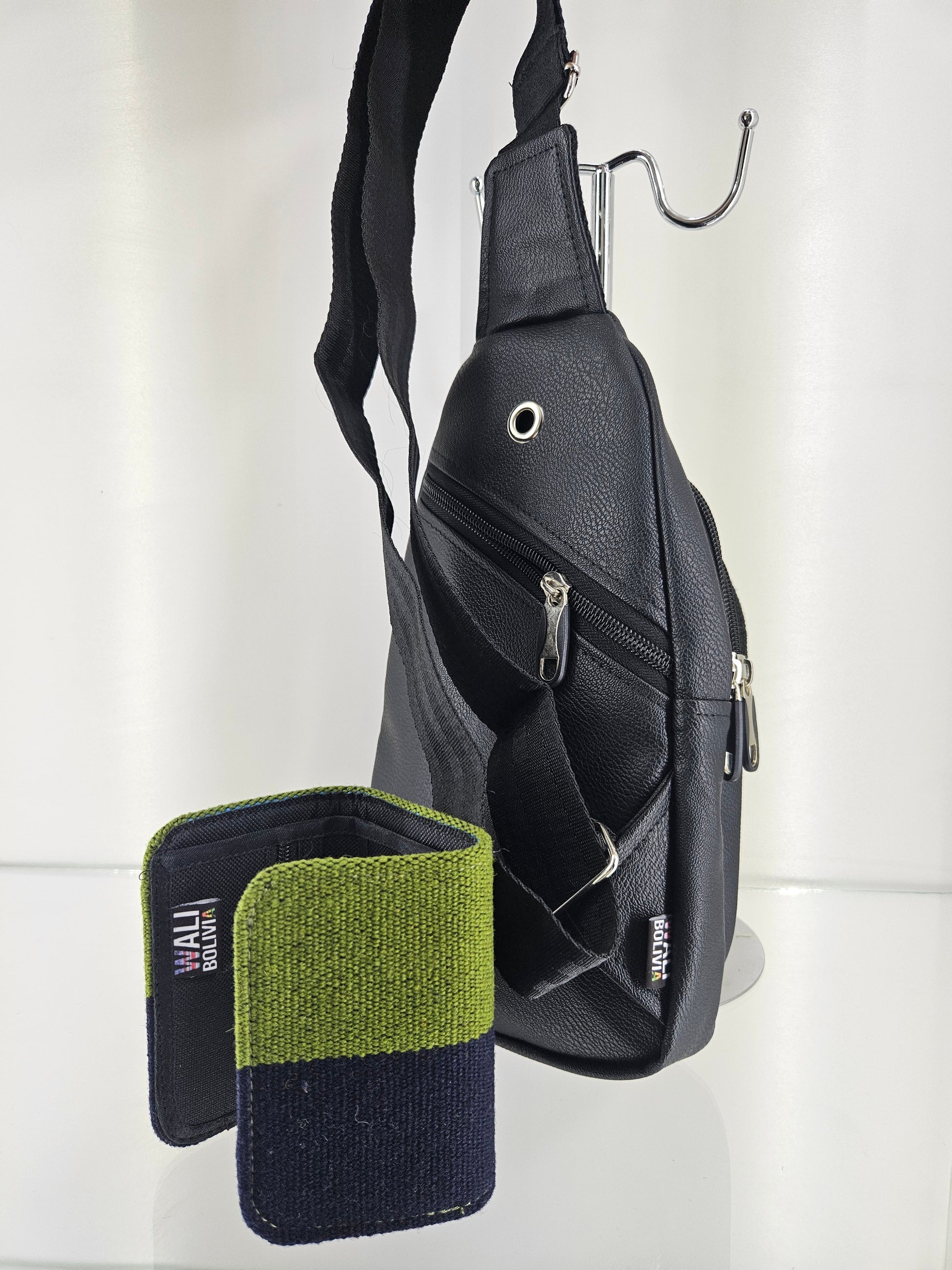 combo pechera y billetera triple (azul marin)